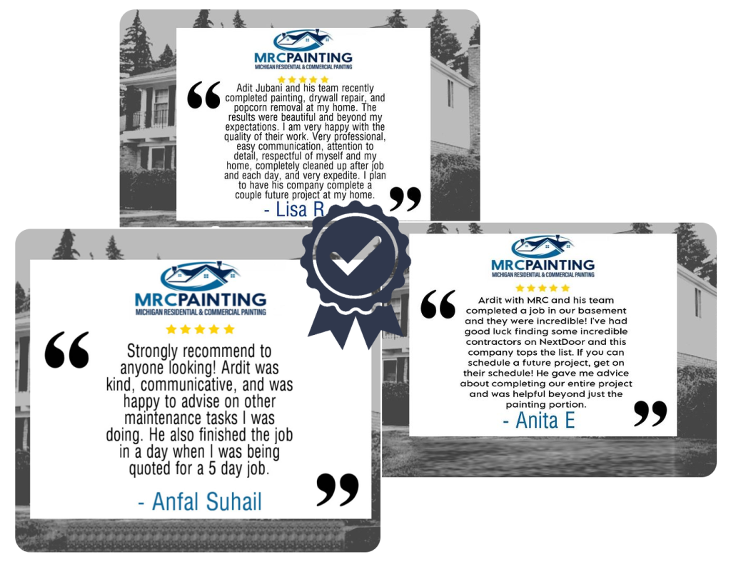 If you’re searching for expert painting contractors in Michigan, MRC Painting is your ideal choice. Our clients consistently express satisfaction with our professional work on their homes and businesses. Not sure which paint colors to select? Consult with our trusted painting experts to discover the perfect shade and finish for your space.
